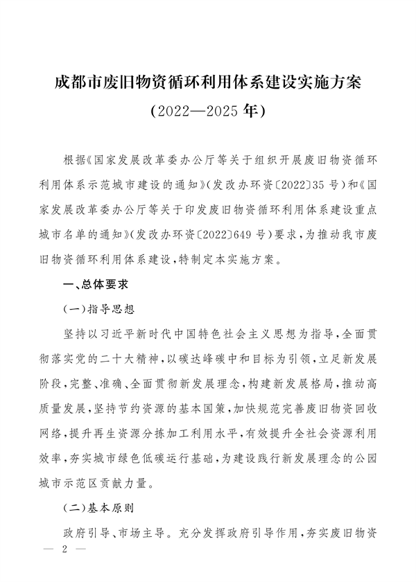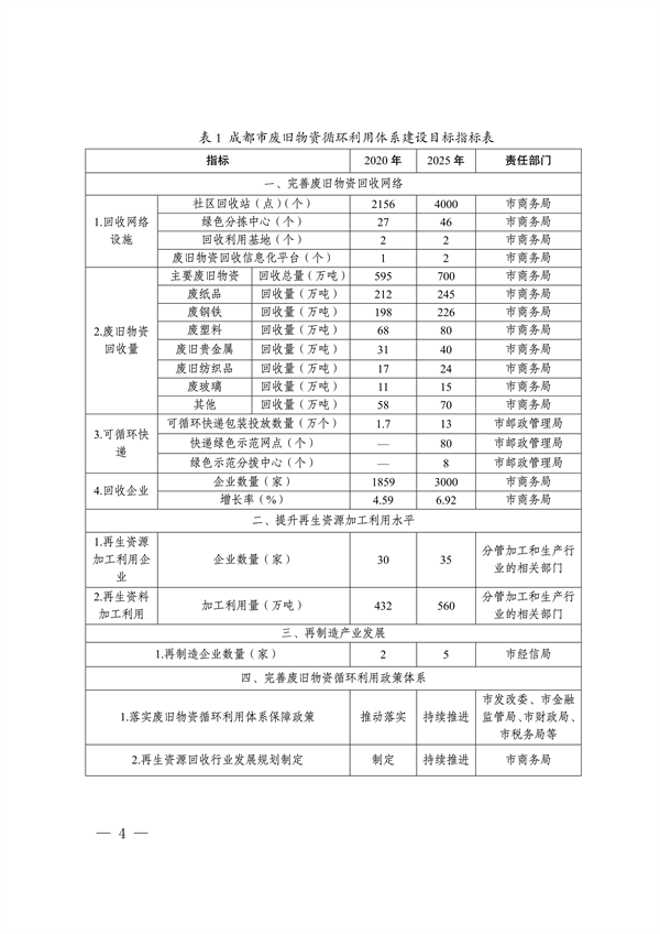成都市废旧物资循环利用体系建设实施方案(2022-2025年)