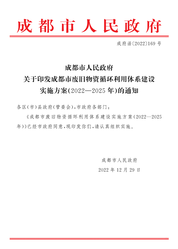 当前位置: 网站首页 > 新闻中心 > 重要通知 > 成都市废旧物资循环利用体系建设实施方案(2022-2025年)